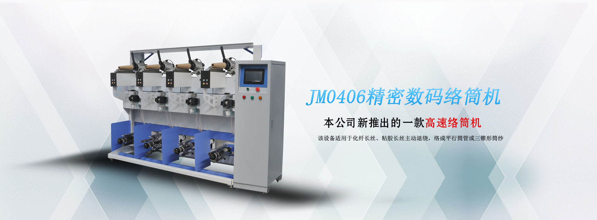 JM0401精密數碼絡筒機是本公司新推出的一款高速絡筒機。該設備適用于化纖長絲、蠶絲、粘膠長絲的松式絡筒及包覆并紗倒筒。